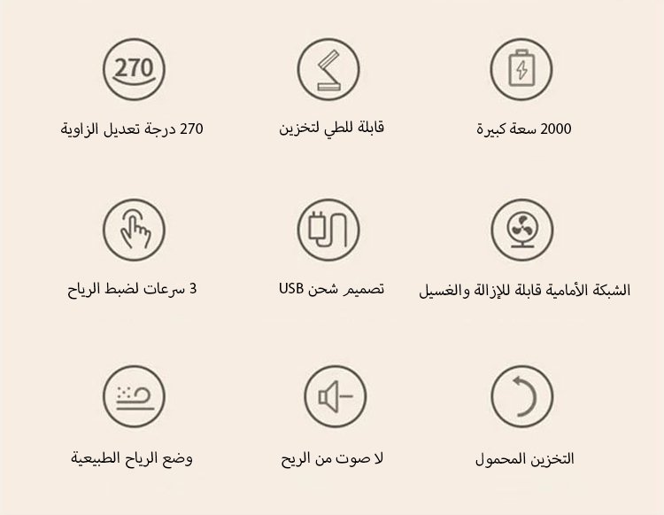 بطارية عالية السعة 2000 مللي أمبير، 3 مستويات من الرياح، صامتة تمامًا